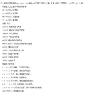 附表是不同分贝的不同表现